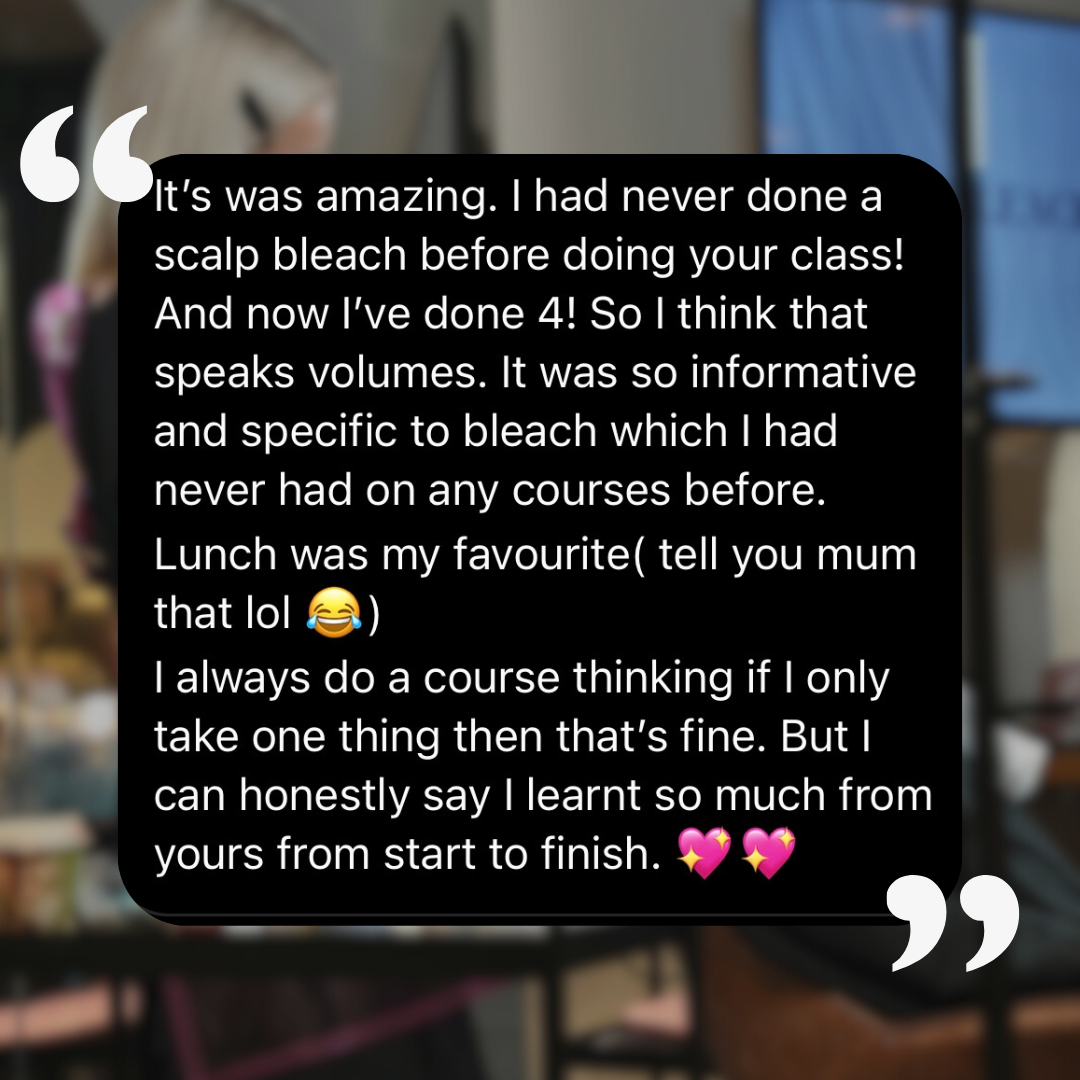 After a completely sold out Australia tour, I’m bringing Scalp Bleaching 101 back across the UK in 2026, and for the first time ever I’ll be teaching in Glasgow and Cardiff alongside Manchester and London.